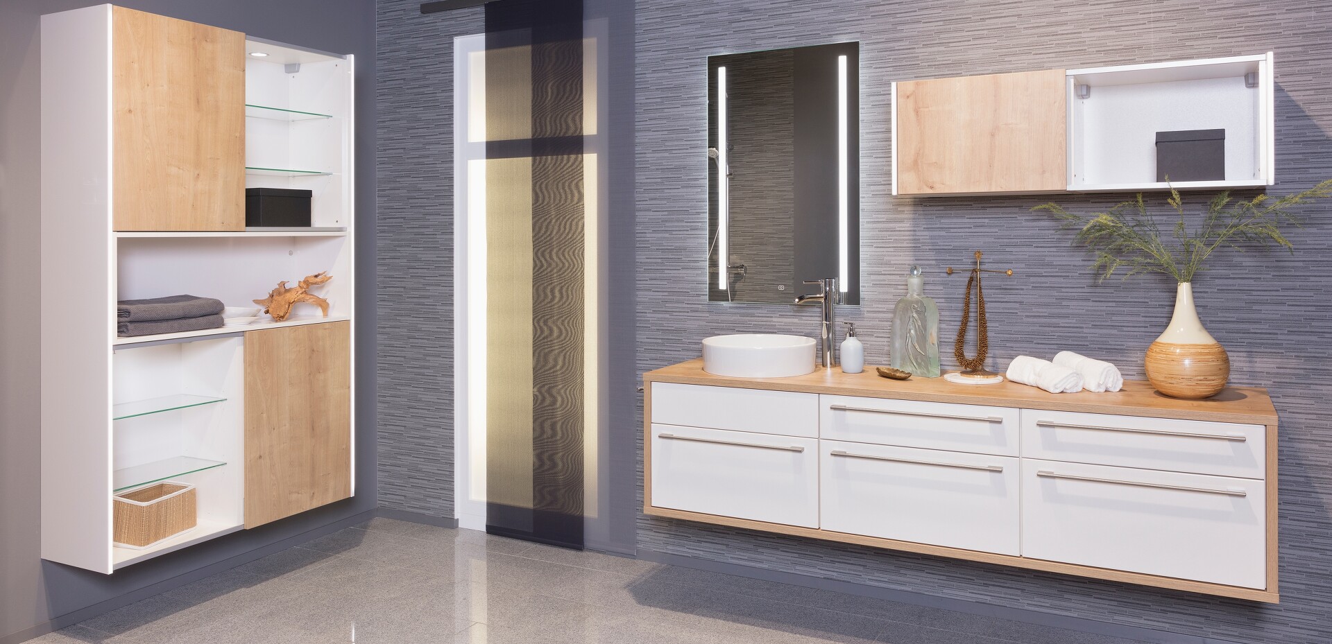 Wir realisieren nicht nur Ihre Wunschküche, sondern auch passende Möbel sowie Bäder und komplette Inneneinrichtungen. Egal, ob Sie einen Esstisch oder Einbauschrank, ein Sideboard oder ein Waschbecken benötigen. Wir liefern Ihnen gute Ideen und kümmern uns um alles, von A-Z – auch um eventuell benötigte Handwerker. Verlassen Sie sich auf uns bis ins kleinste Detail wie z. B. Lichtschalter oder Bodenbeläge in den passenden Farben.
