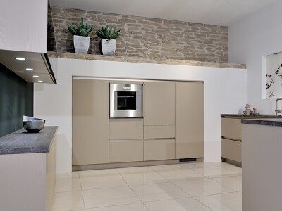 Taillenhöhe ist die ideale Einbauhöhe. Arme in Augenhöhe – da müssen Sie beim Entnehmen von Geschirr oder Backblech richtig Gewichte stemmen. Gerade Backofen und Geschirrspülmaschine sollten dementsprechend halbhoch eingeplant werden. Das Orientierungsmaß ist die eigene Körpergröße bzw. Taillenhöhe.